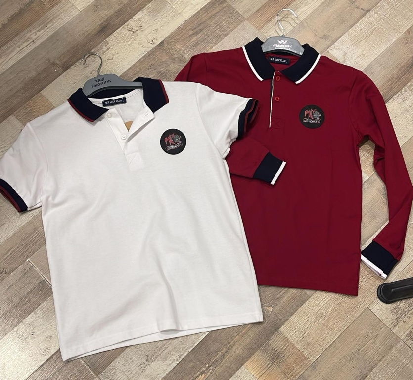 * Doğal ve sağlıklı (pamuklu) kumaştan , polo yaka, kısa veya uzun kol beyaz veya bordo renk (lakoste) tişört
